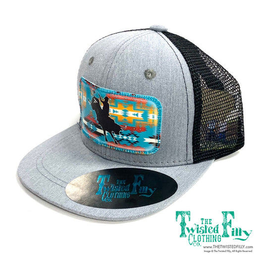 Aztec Calf Roper - Youth/Adult Trucker Hat - Blk/Htr Gry