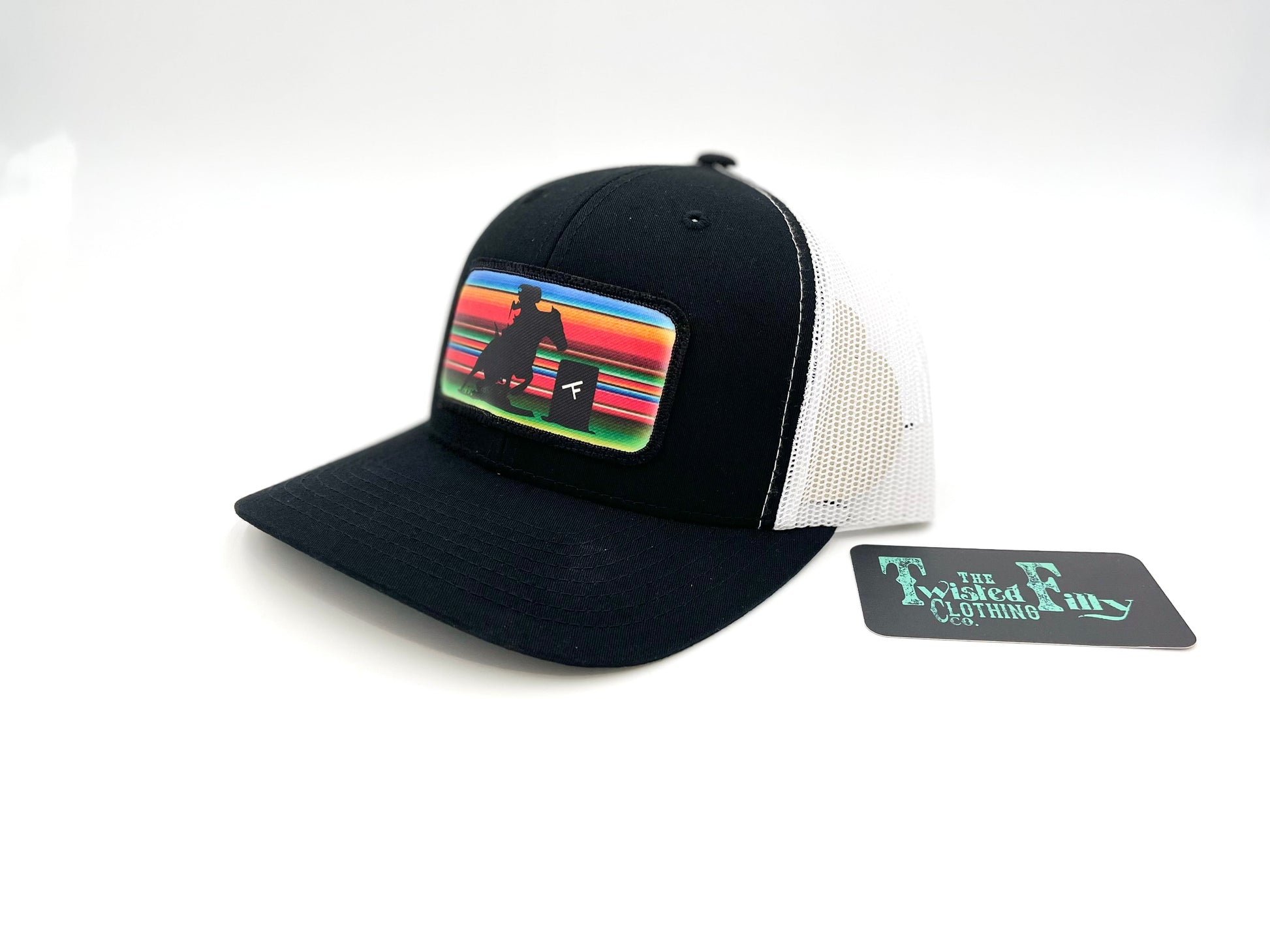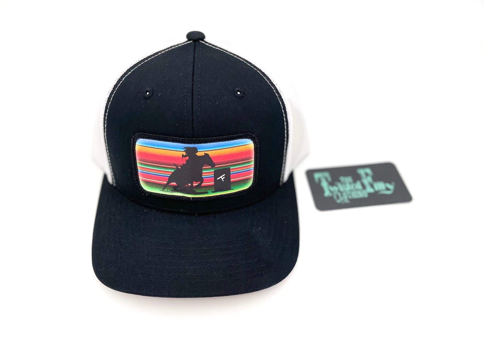 Serape Barrel Racer - Youth/Adult Trucker Hat - Black/White